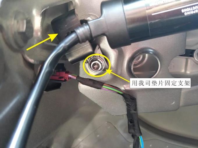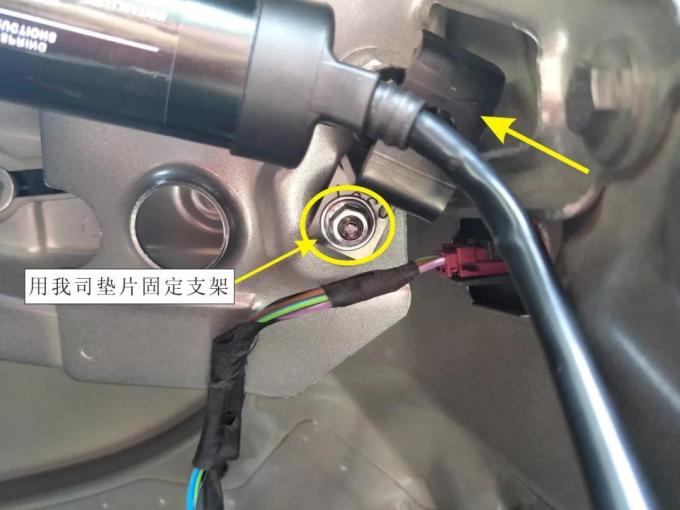 4. عقب ماشین اصلی را بردارید، براکت چپ شرکت ما و قطب الکتریکی را نصب کنید، یک واشر را روی سوراخ براکت اضافه کنید.