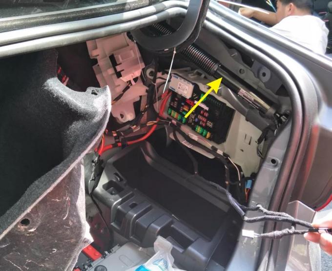 9. تنه درب را برای یافتن مکش الکتریکی خودرو اصلی پیدا کنید.
